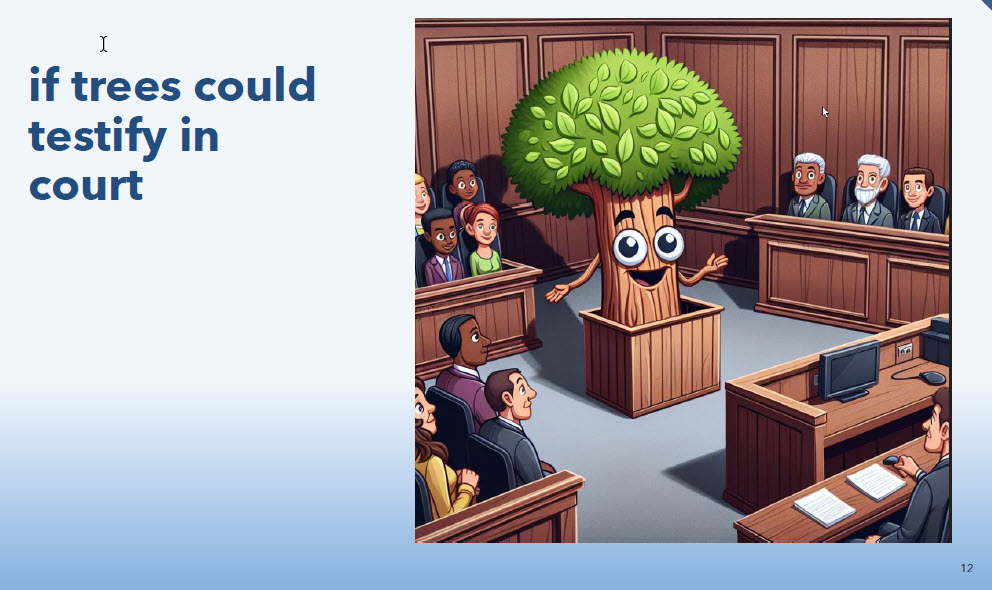 What they may specifically need from an expert as they defend or advocate a case involving trees.
